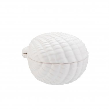 Ёмкость косметическая настольная. Произведено из керамики. Цвет белый. Глянцевая рельефная поверхность.