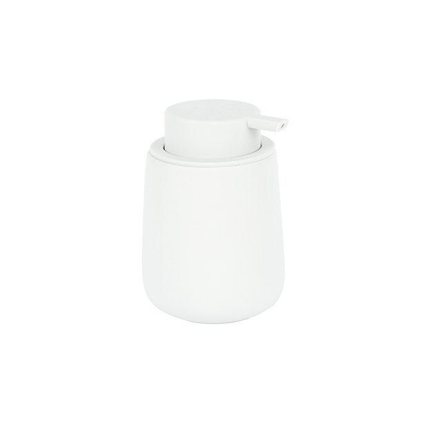 Дозатор для жидкого мыла. Объем 300мл. Произведено из керамики, носик изготовлен из пластика. Цвет кремовый. Матовая поверхность с покрытием soft touch.
