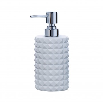 Дозатор для жидкого мыла. Объем 300мл. Произведено из полирезина и пластика, покрытого хромом. Цвет белый. Поверхность с объемным рисунком.