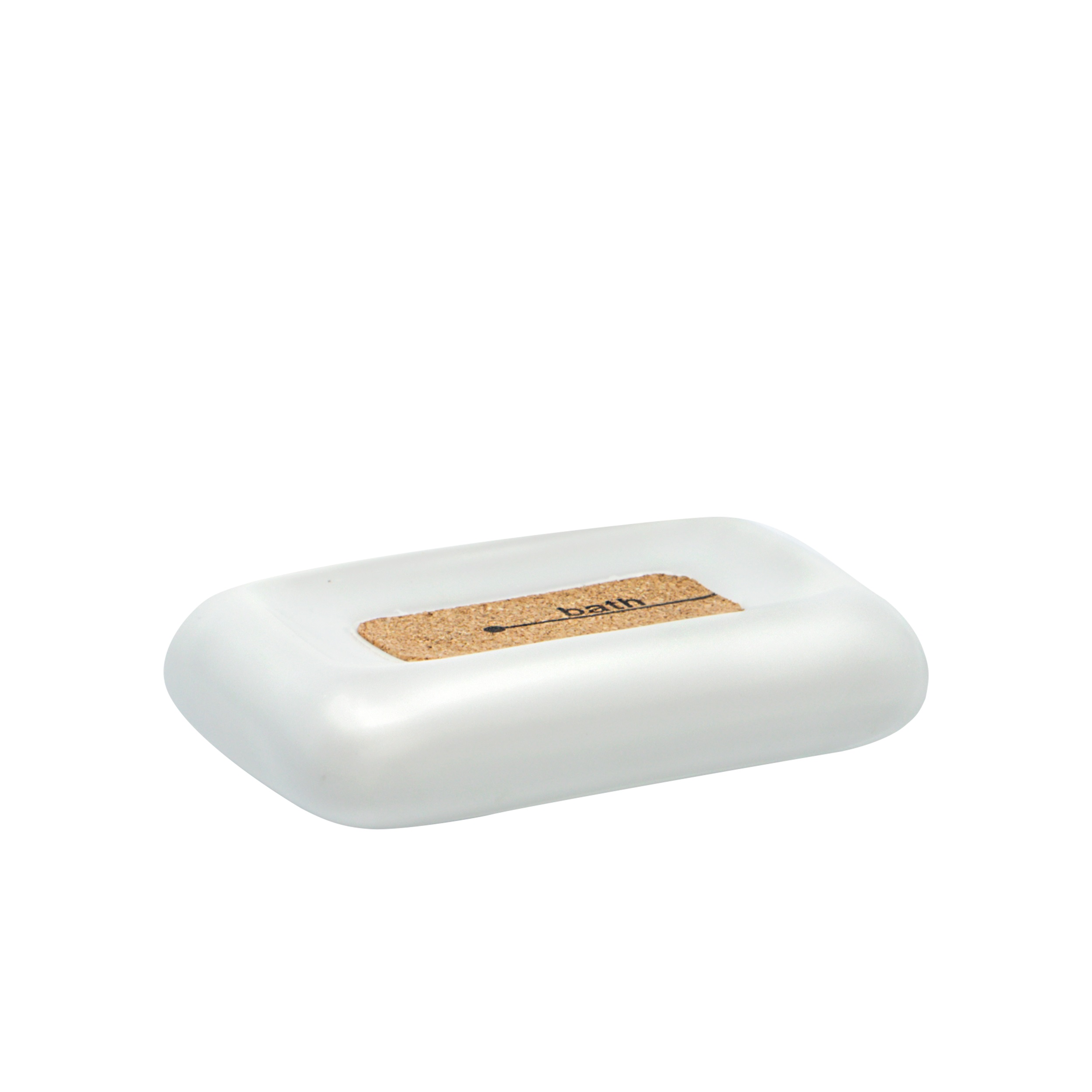 Мыльница. Произведено из керамики. Цвет белый. Материал вставки - пробка. Матовая поверхность.
