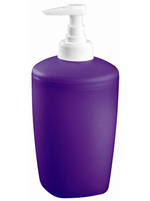 Дозатор для жидкого мыла. Произведено из пластика. Цвет фиолетовый. Поверхность матовая.