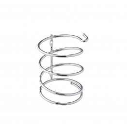 Держатель для фена. Крепится к стене шурупами. Произведено из хромированной стали. Крепеж в комплекте.