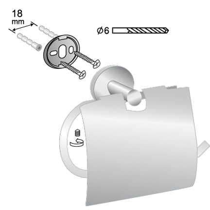 Держатель туалетной бумаги с крышкой. Крепится к стене шурупами или специальным двухкомпонентным клеем для металла и керамики. Произведено из цинкоалюминиевого сплава. Цвет черный.