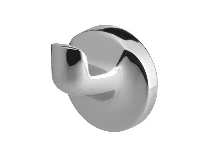 Крючок одинарный. Крепится к стене шурупами. Произведено из цинкоалюминиевого сплава, покрытого хромом.