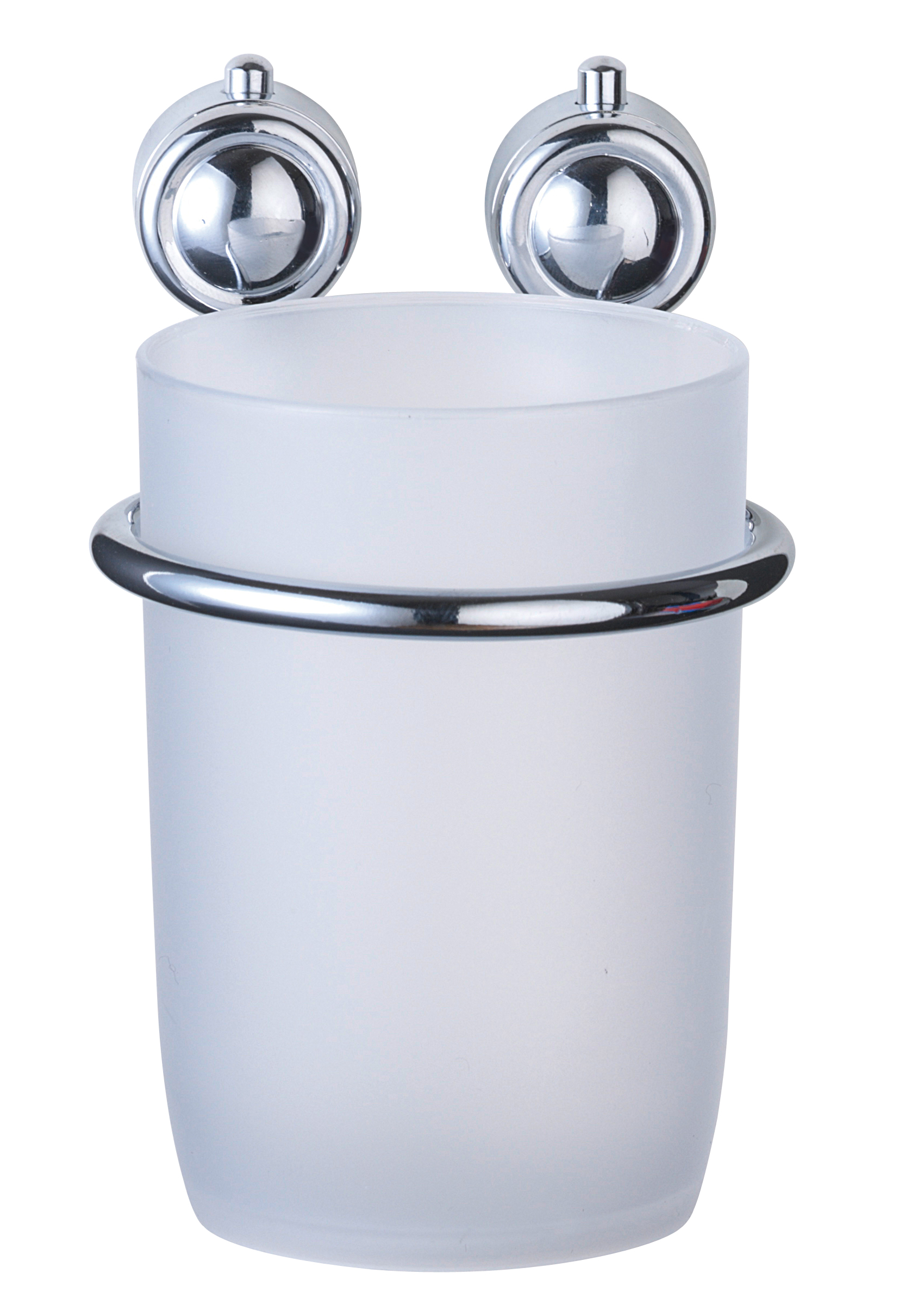 Стакан с держателем. Крепится к стене шурупами. Произведено из хромированной стали с пластиковыми элементами.