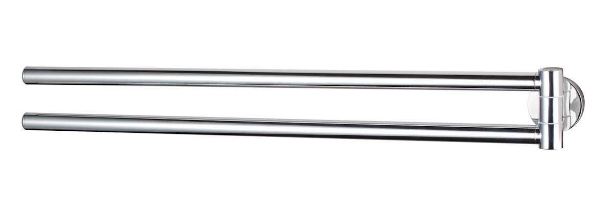 Вешалка двойная раздвижная. Крепится к стене шурупами. Произведено из цинкоалюминиевого сплава, покрытого хромом.
