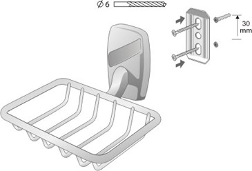 Мыльница решетка. Крепится к стене шурупами. Произведено из цинкоалюминиевого сплава, покрытого хромом.