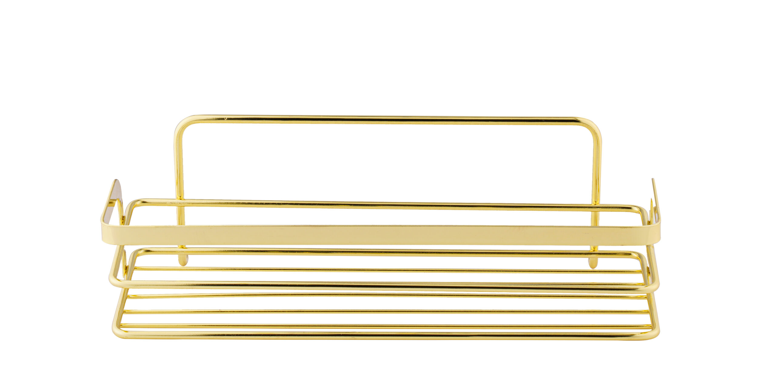 Полка подвесная. Произведено из стального сплава с золотистым напылением. Крепится на гладкую поверхность при помощи присосок. Есть возможность крепления к стене шурупами. Крепеж в комплекте.