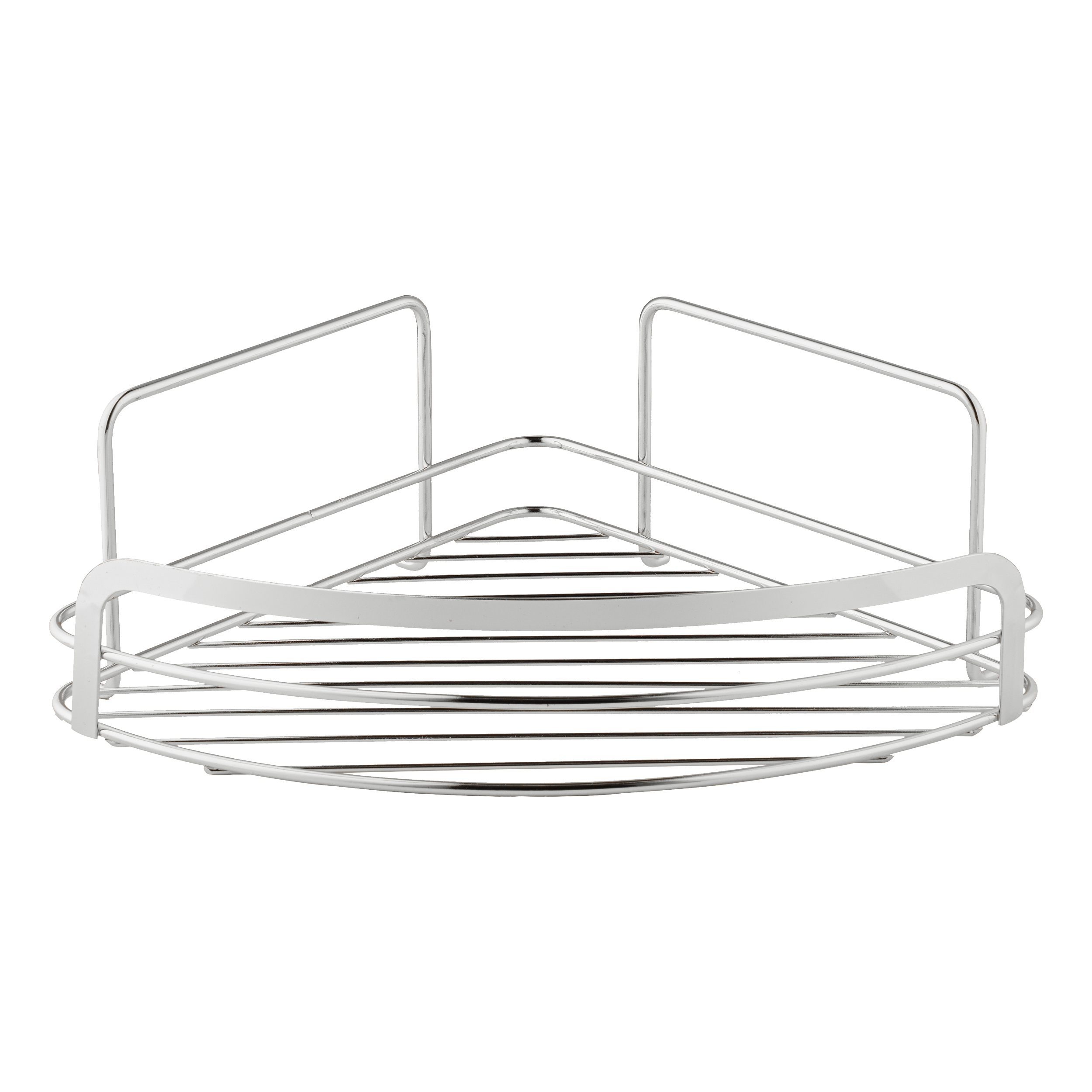 Полка подвесная угловая. Произведено из хромированной стали. Крепится на гладкую поверхность при помощи присосок. Есть возможность крепления к стене шурупами. Крепеж в комплекте.