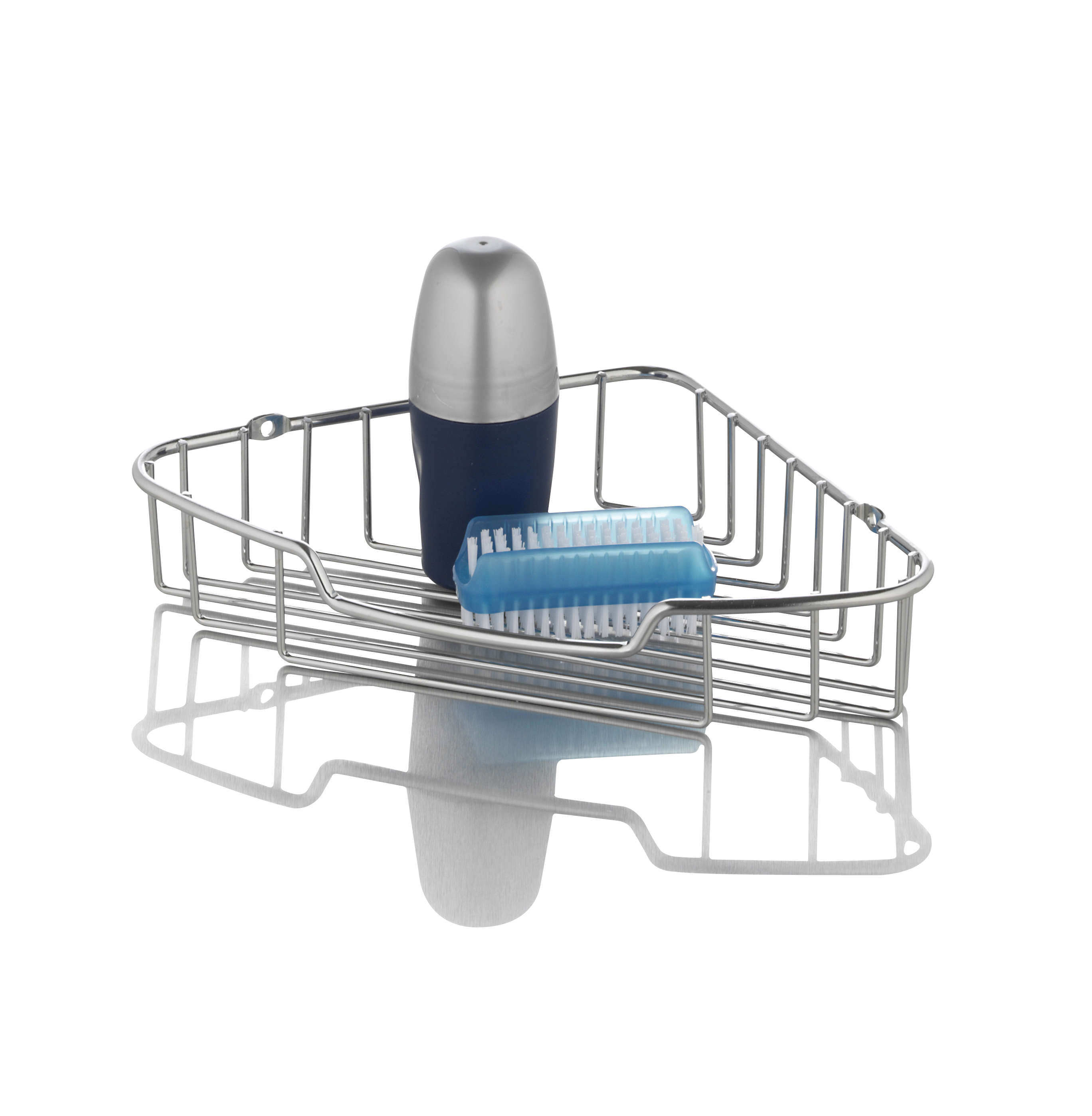 Полка подвесная угловая. Крепится к стене шурупами. Максимальная нагрузка 2кг. Произведено из стального сплава, покрытого хромом. Крепеж в комплекте.