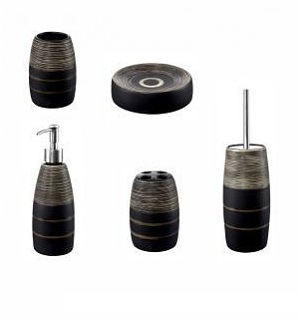 Стакан для зубных щеток. Произведено из керамики. Цвет черный. Рельефная поверхность с рисунком.