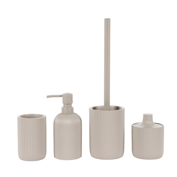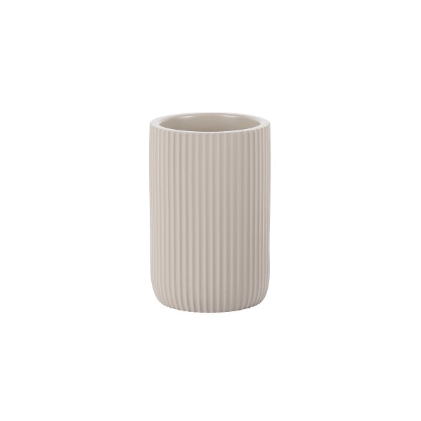 Стакан косметический. Произведено из полирезина. Цвет серо-коричневый. Поверхность матовая с рельефными полосками.