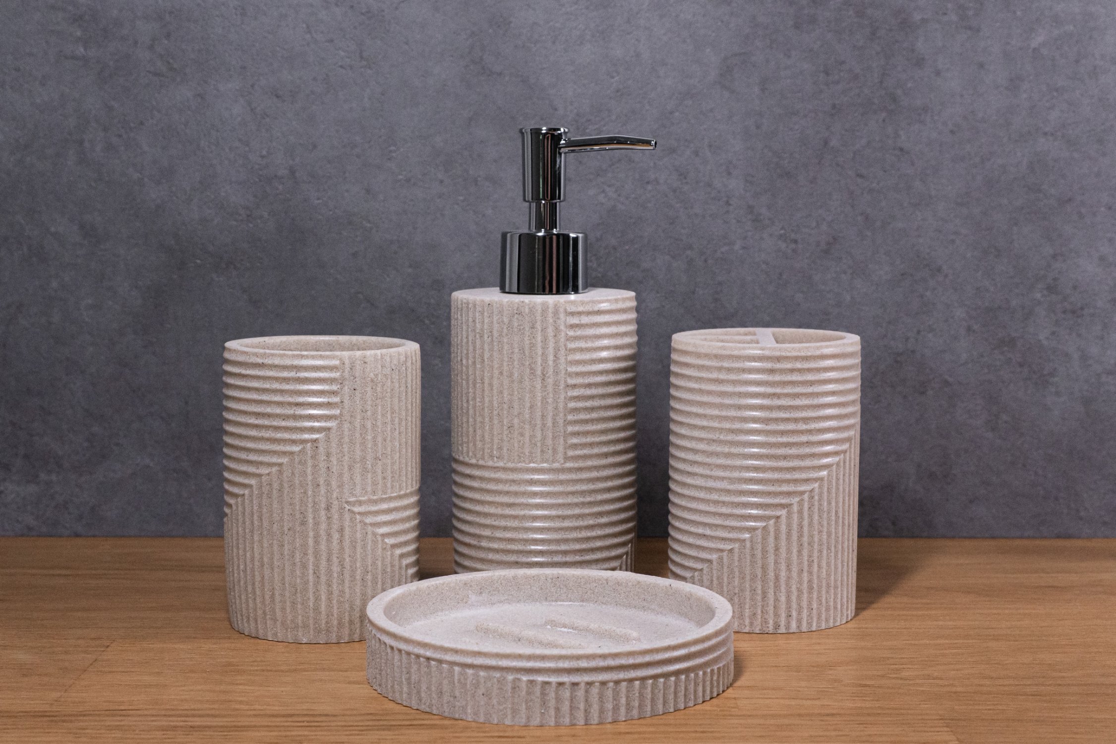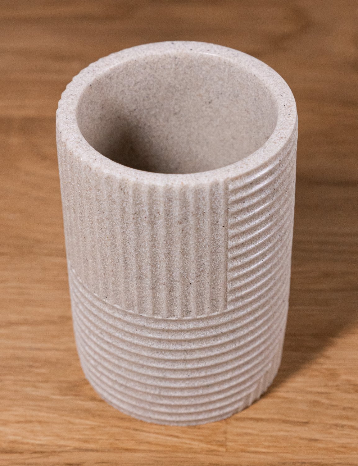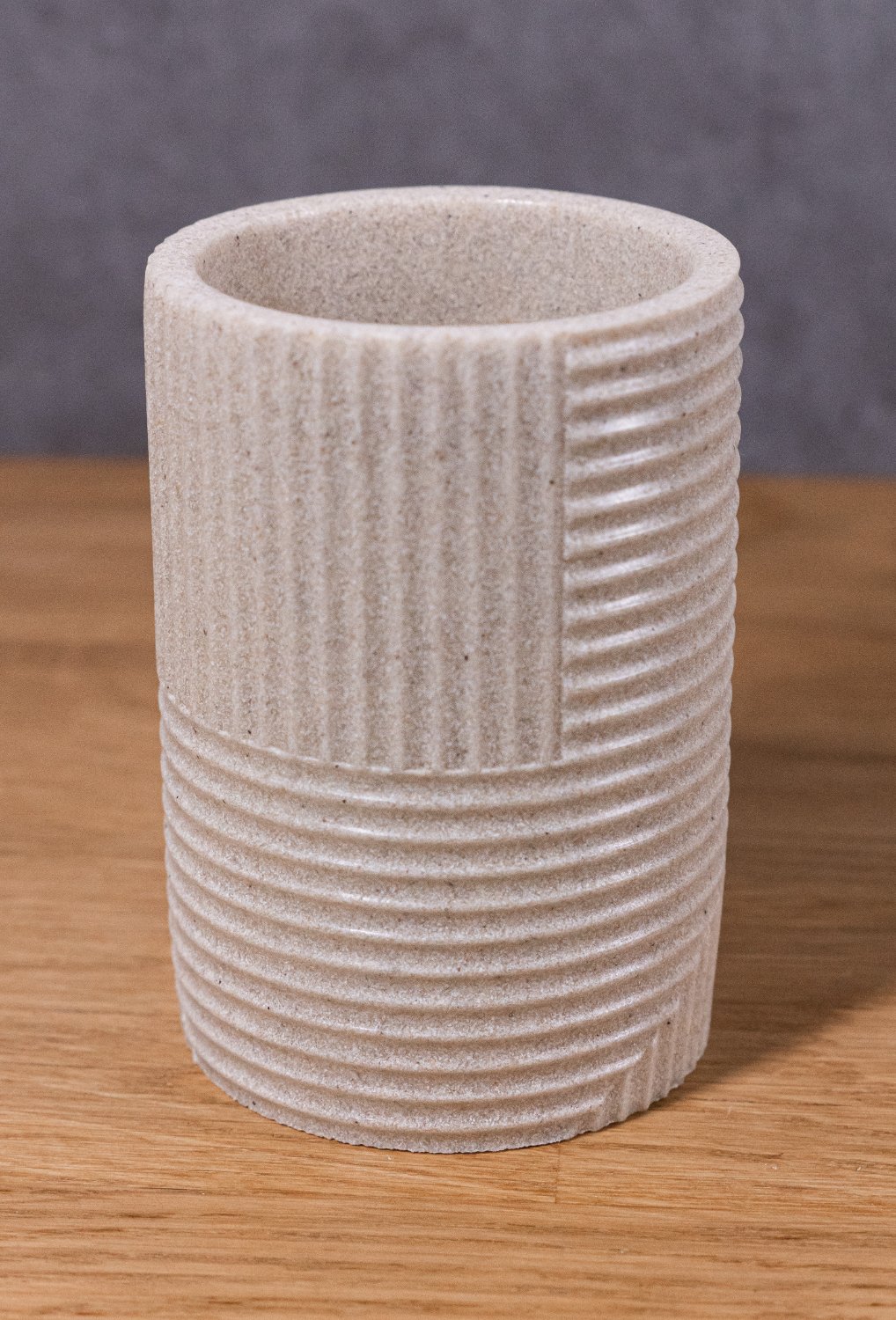 Стакан косметический. Произведено из полирезина. Цвет бежевый с рельефным рисунком.