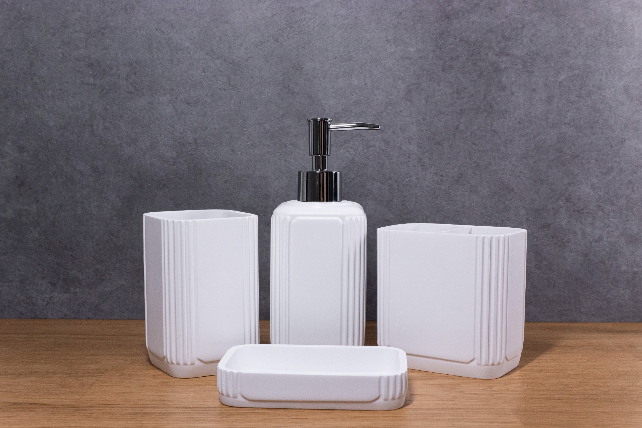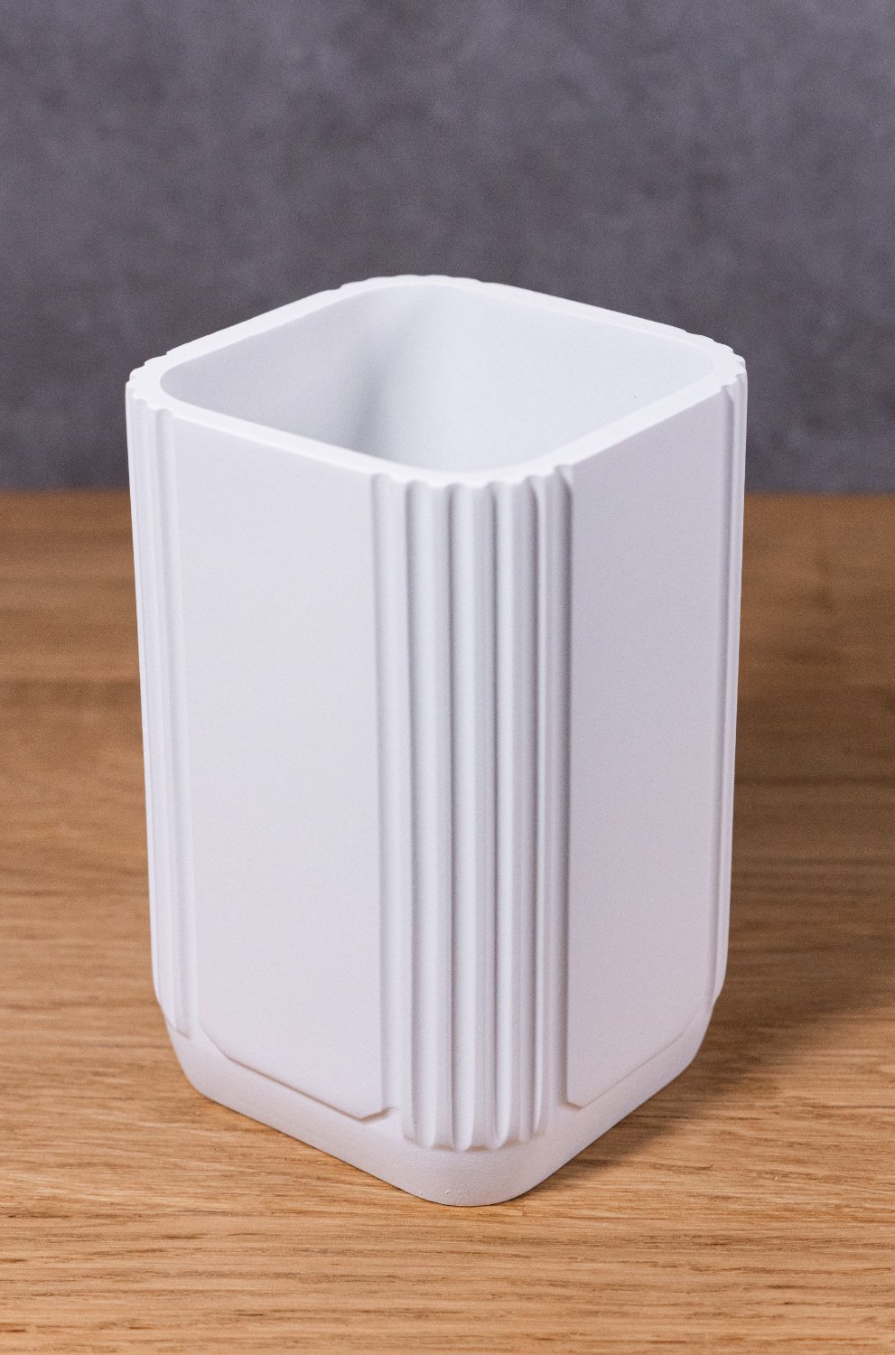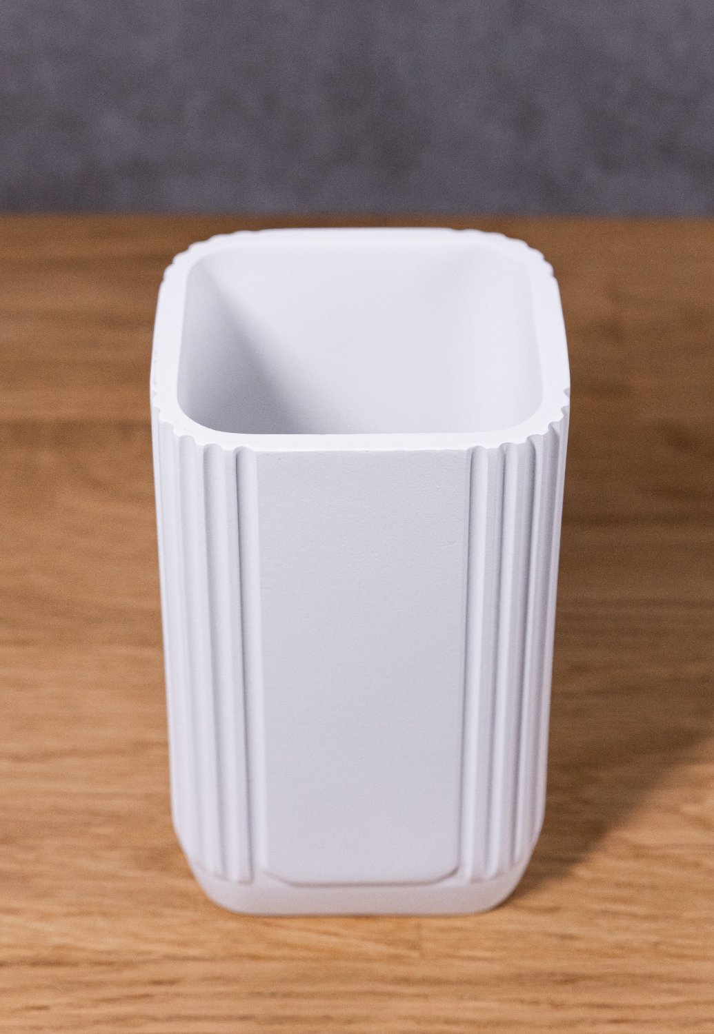 Стакан косметический. Произведено из полирезина. Цвет белый с рельефным рисунком.