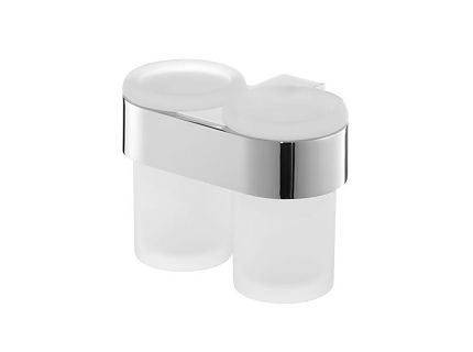 Стакан двойной с держателем. Крепится к стене шурупами. Произведено из цинкоалюминиевого сплава, покрытого хромом, и матового стекла. Коллекция получила авторитетную награду в области дизайна Reddot 2012.