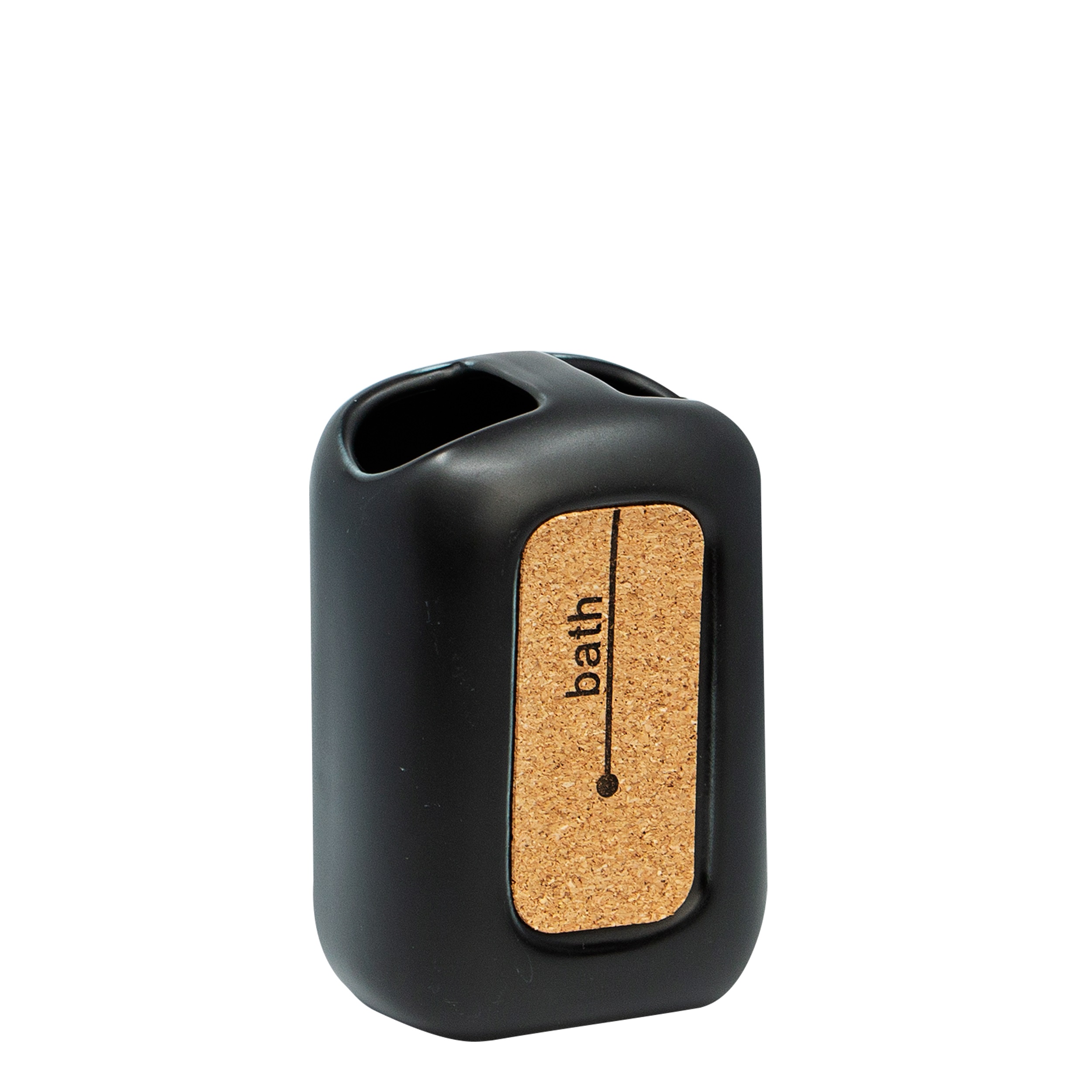 Стакан для зубных щеток. Произведено из керамики. Цвет черный. Материал вставки - пробка. Матовая поверхность.