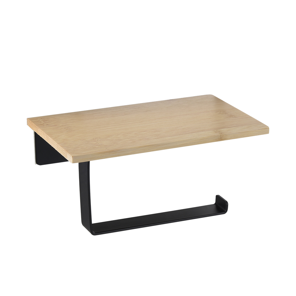 Держатель туалетной бумаги с полочкой для мобильного телефона. Произведено из нержавеющей стали и бамбукового дерева. Упаковано в картонную коробку.