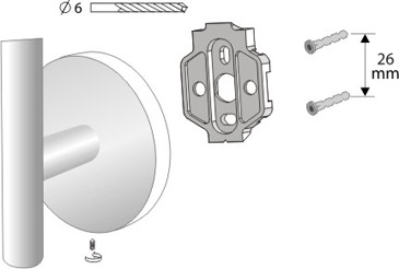 Держатель запасного рулона туалетной бумаги. Крепится к стене шурупами или специальным двухкомпонентным клеем для металла и керамики. Произведено из цинкоалюминиевого сплава, покрытого хромом.