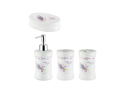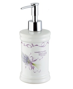 Дозатор для жидкого мыла. Произведено из керамики и пластика, покрытого хромом. Цвет белый. Глянцевая поверхность с рисунком.
