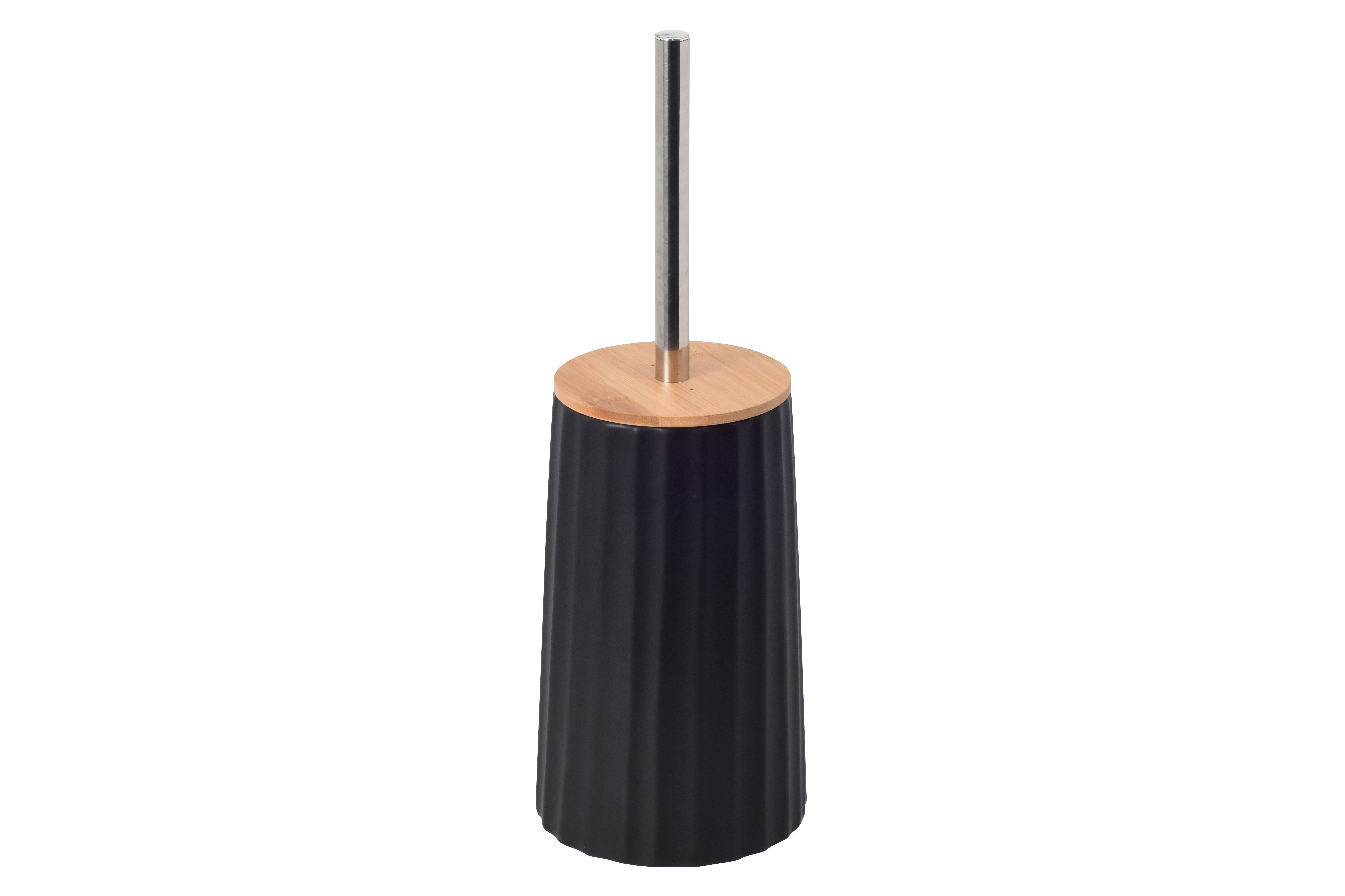 Щетка для унитаза. Произведено из керамики и стального сплава, покрытого хромом. Цвет черный. Материал крышки бамбук.. Матовая рельефная поверхность.