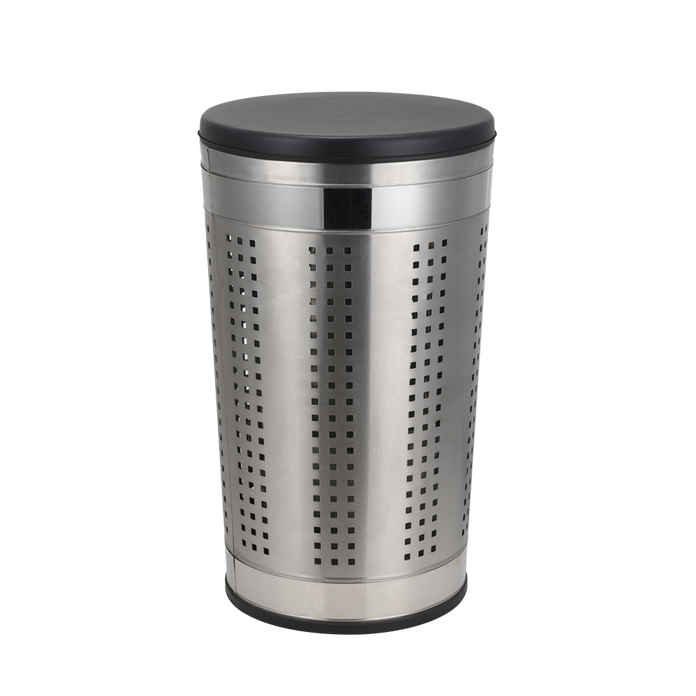 Корзина для белья с крышкой. Объем 46 литров. Произведено из нержавеющей стали повышенной прочности толщиной 0,35 мм. Поверхность матовая с хромированными вставками. Мягкая крышка с отделкой из экокожи.