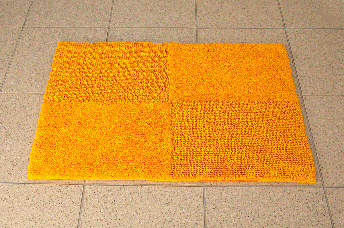 Коврик для ванной комнаты. Материал - 100% хлопок. Цвет желтый. Двухсторонний рисунок. Основные преимущества – практичность, долговечность, простота ухода, экологичность. Качество материала позволяет на протяжении длительного времени сохранять первоначальную форму, цвет и высоту ворса коврика. Для сохранения мягкости нитей ткани рекомендуется ручная или машинная стирка с добавлением смягчающих средств. С целью избежания деформации коврик следует сушить на плоской поверхности. Может использоваться не только в ванной комнате, но и в других помещениях. Допустимо размещение на подогреваемых полах.