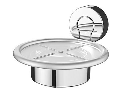 Мыльница. Крепится к стене шурупами или специальным двухкомпонентным клеем для металла и керамики. Произведено из цинкоалюминиевого сплава, покрытого хромом, и матового стекла.