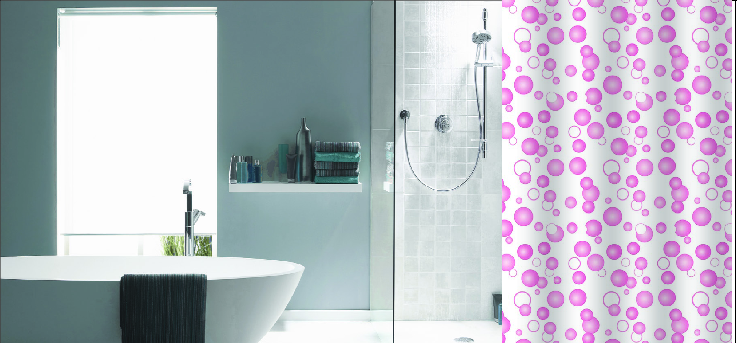 Штора для ванной комнаты. Изготовлена из высококачественного полиэтилена (PEVA). Толщина материала 0,09мм, плотность 93г/см²Основные преимущества – прочность, практичность, водонепроницаемость.