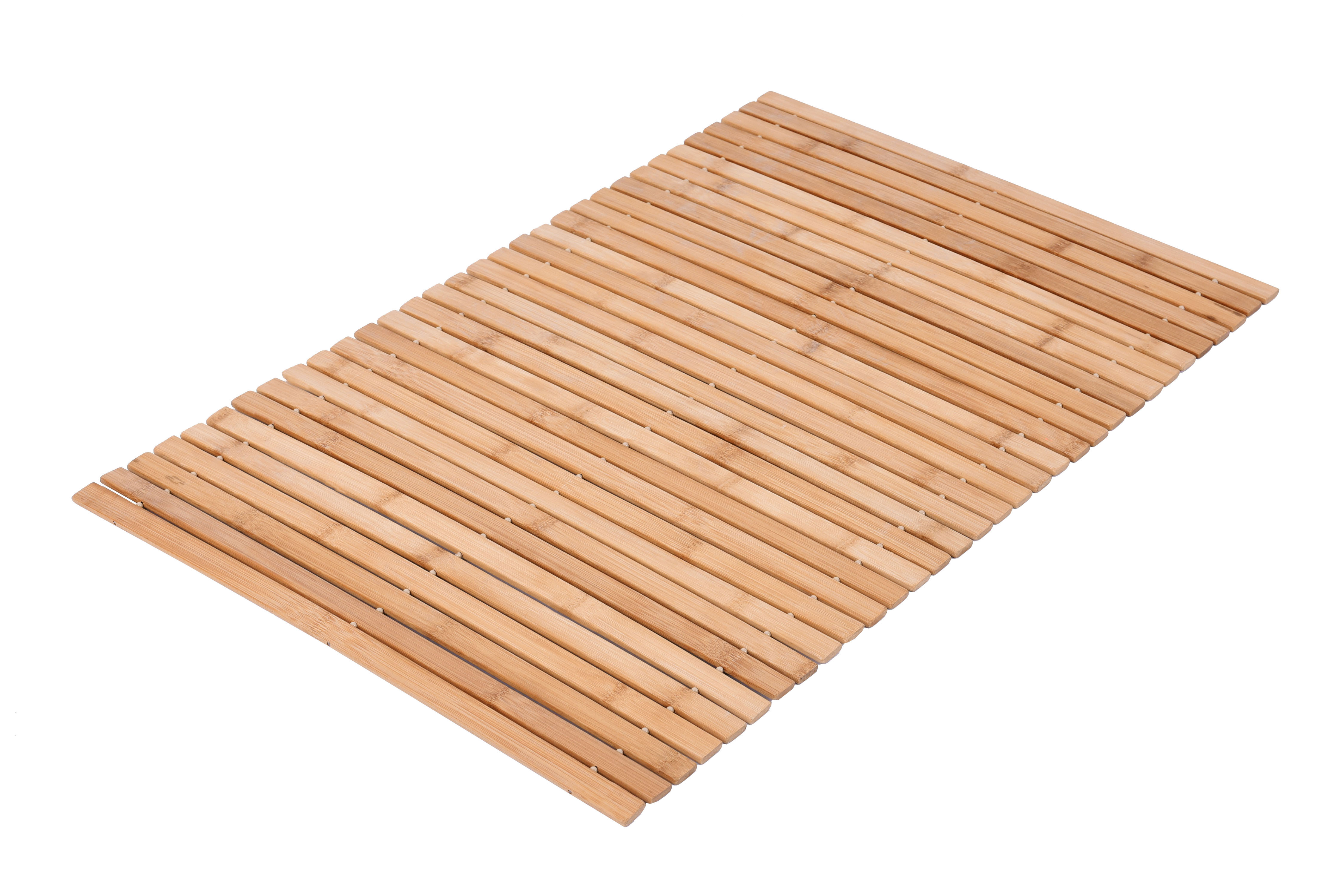 Коврик для ванной комнаты. Произведено из бамбука. Поверхность обработана антисептическим раствором и покрыта лаком. Натуральный природный материал бамбук с высокими теплоизоляционными свойствами сделает пребывание в ванной комнате комфортным и безопасным. Коврик обеспечит защиту чувствительных участков тела от соприкосновения с горячими поверхностями и создаст гигиенический барьер.