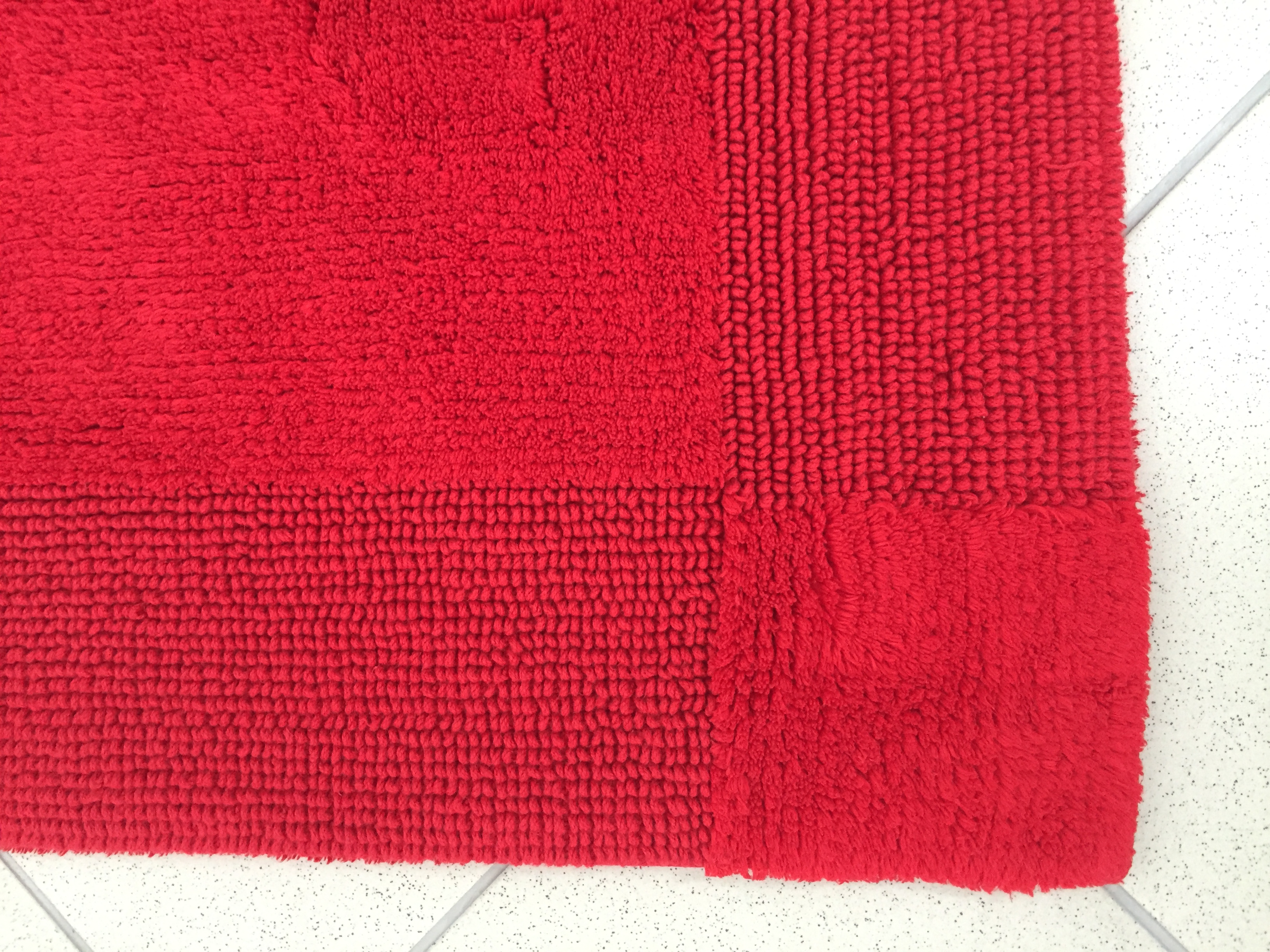 Коврик для ванной комнаты. Материал - 100% хлопок. Цвет бордовый. Двухсторонний рисунок. Основные преимущества – практичность, долговечность, простота ухода, экологичность. Качество материала позволяет на протяжении длительного времени сохранять первоначальную форму, цвет и высоту ворса коврика. Для сохранения мягкости нитей ткани рекомендуется ручная или машинная стирка с добавлением смягчающих средств. С целью избежания деформации коврик следует сушить на плоской поверхности. Может использоваться не только в ванной комнате, но и в других помещениях. Допустимо размещение на подогреваемых полах.