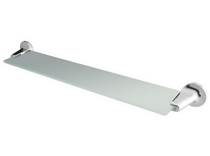 Полка под зеркало. Крепится к стене шурупами. Произведено из цинкоалюминиевого сплава, покрытого хромом, и матового стекла.