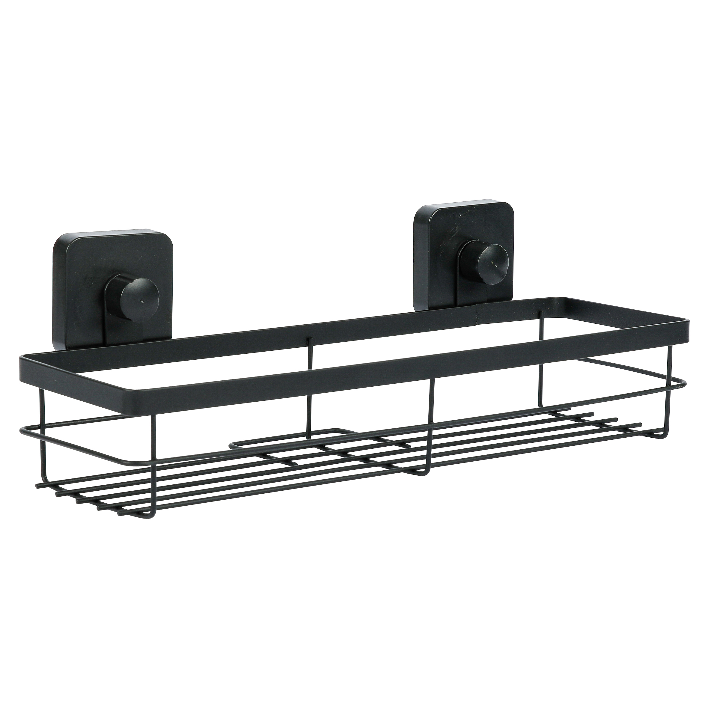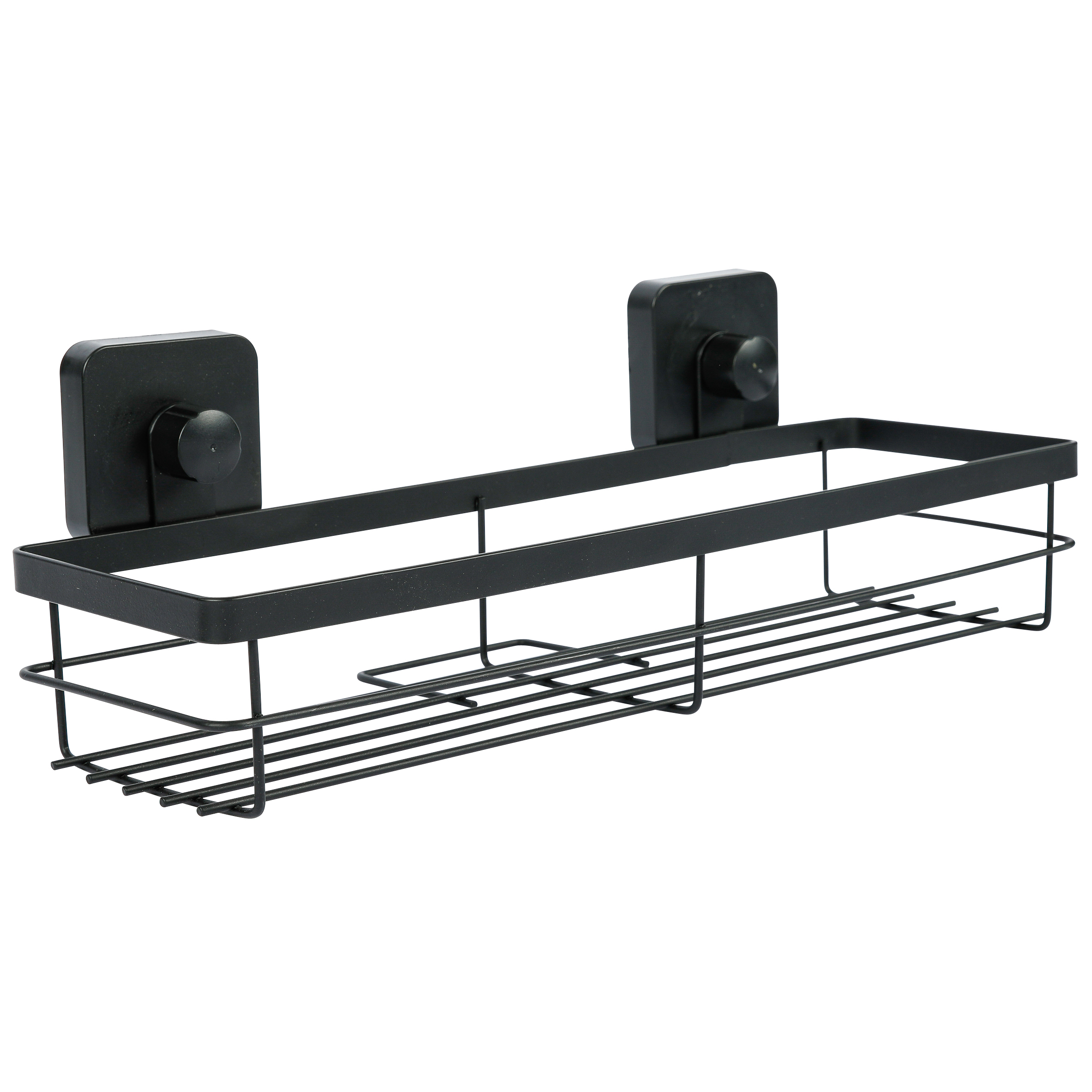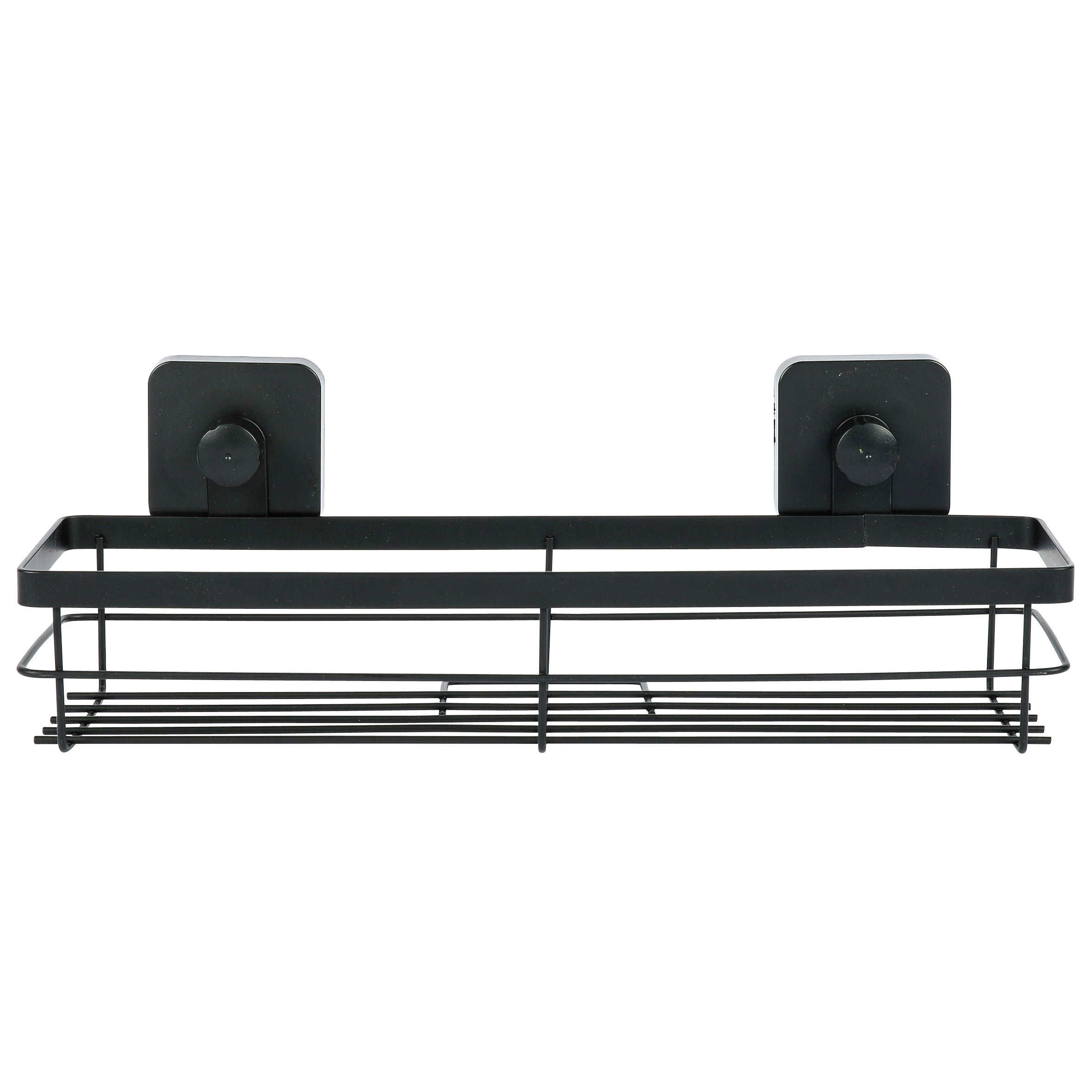 Полка прямоугольная подвесная. Произведено из стального сплава с порошковым покрытием. Цвет черный. Максимальная нагрузка 2 кг. Крепится на гладкую сухую поверхность при помощи присосок, которые спрятаны за «колпачками» черного цвета. Перед использованием рекомендуется не загружать полку 24 часа.