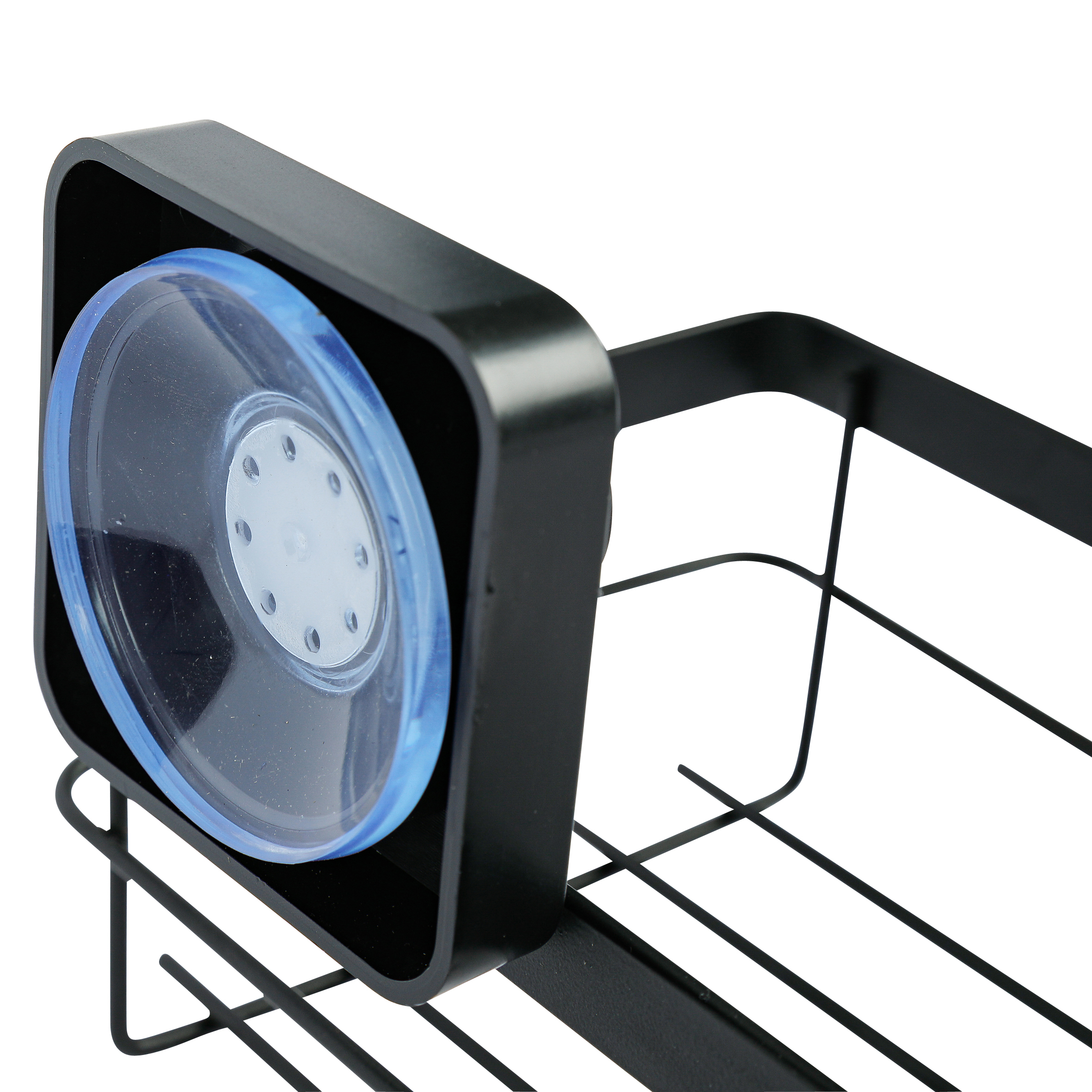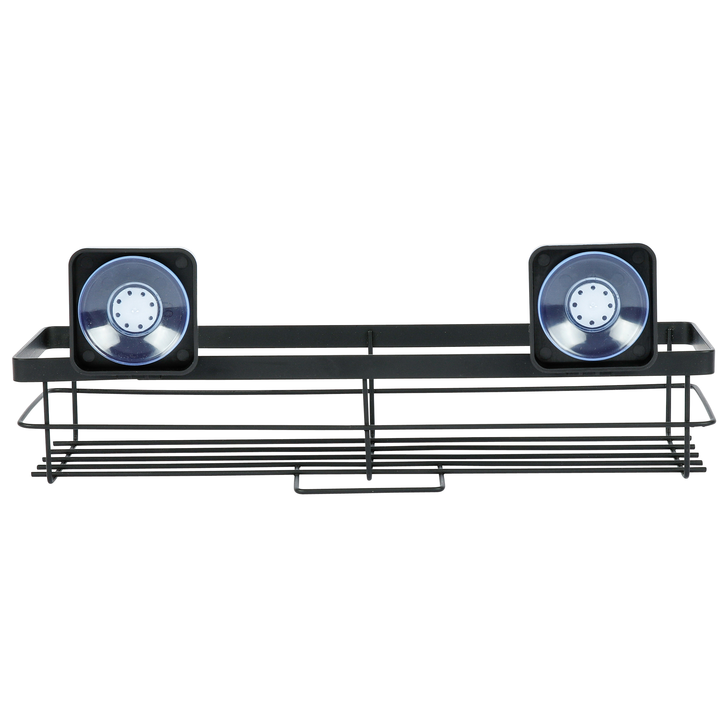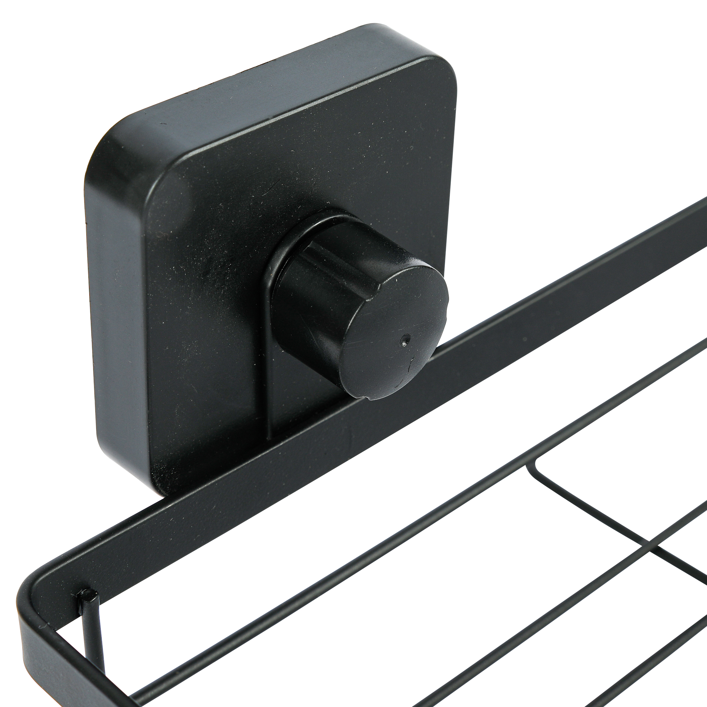 Полка прямоугольная подвесная. Произведено из стального сплава с порошковым покрытием. Цвет черный. Максимальная нагрузка 2 кг. Крепится на гладкую сухую поверхность при помощи присосок, которые спрятаны за «колпачками» черного цвета. Перед использованием рекомендуется не загружать полку 24 часа.