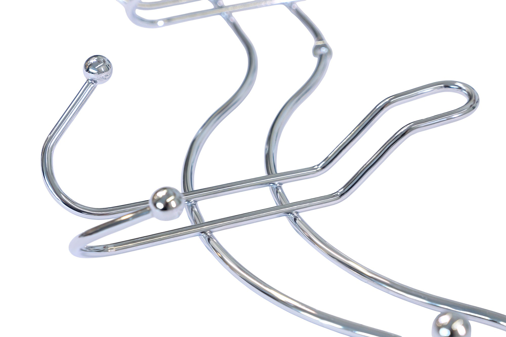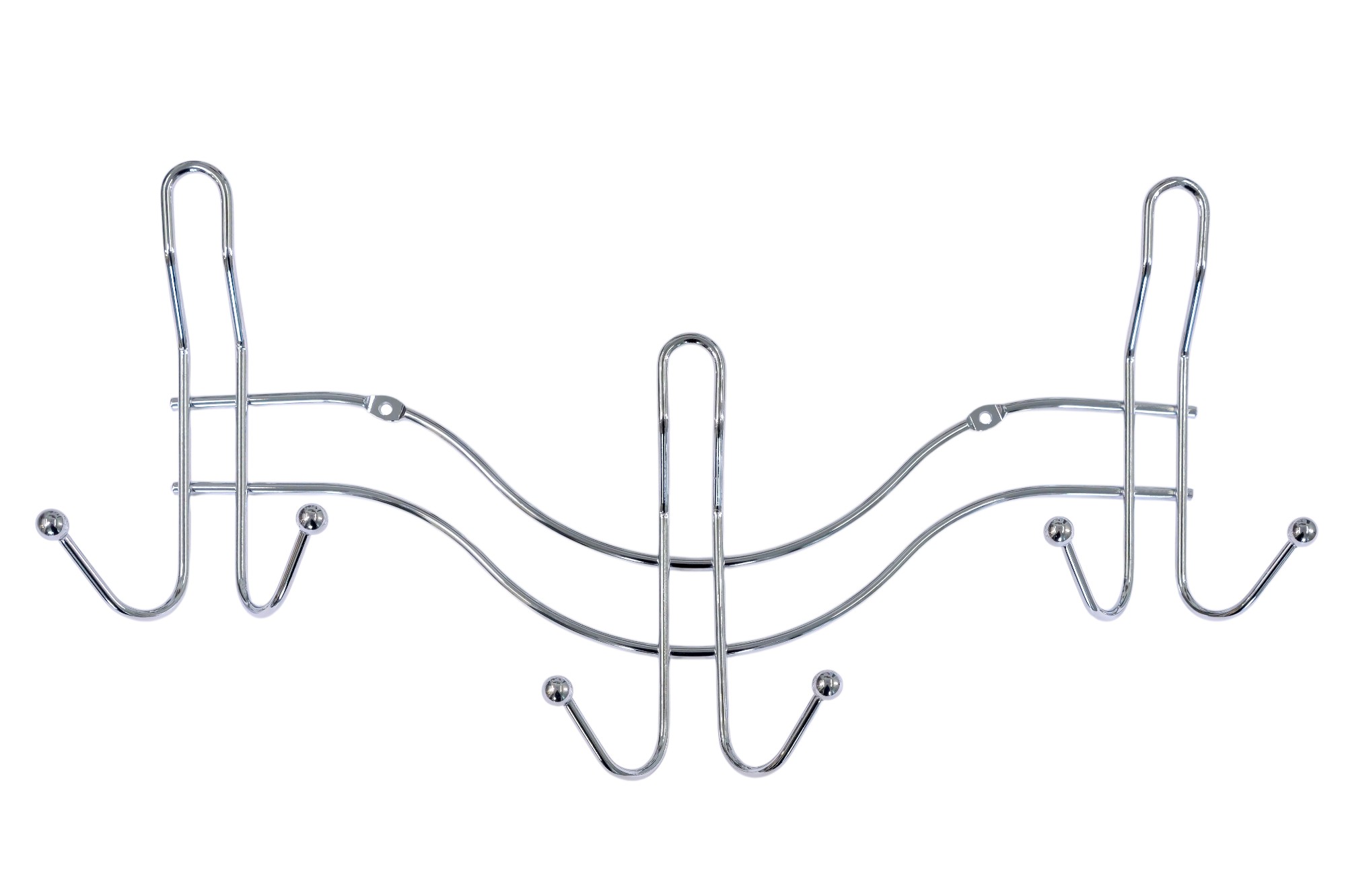 Планка фигурная на три двойных крючка. Крепится к стене шурупами. Произведено из металла, покрытого хромом.