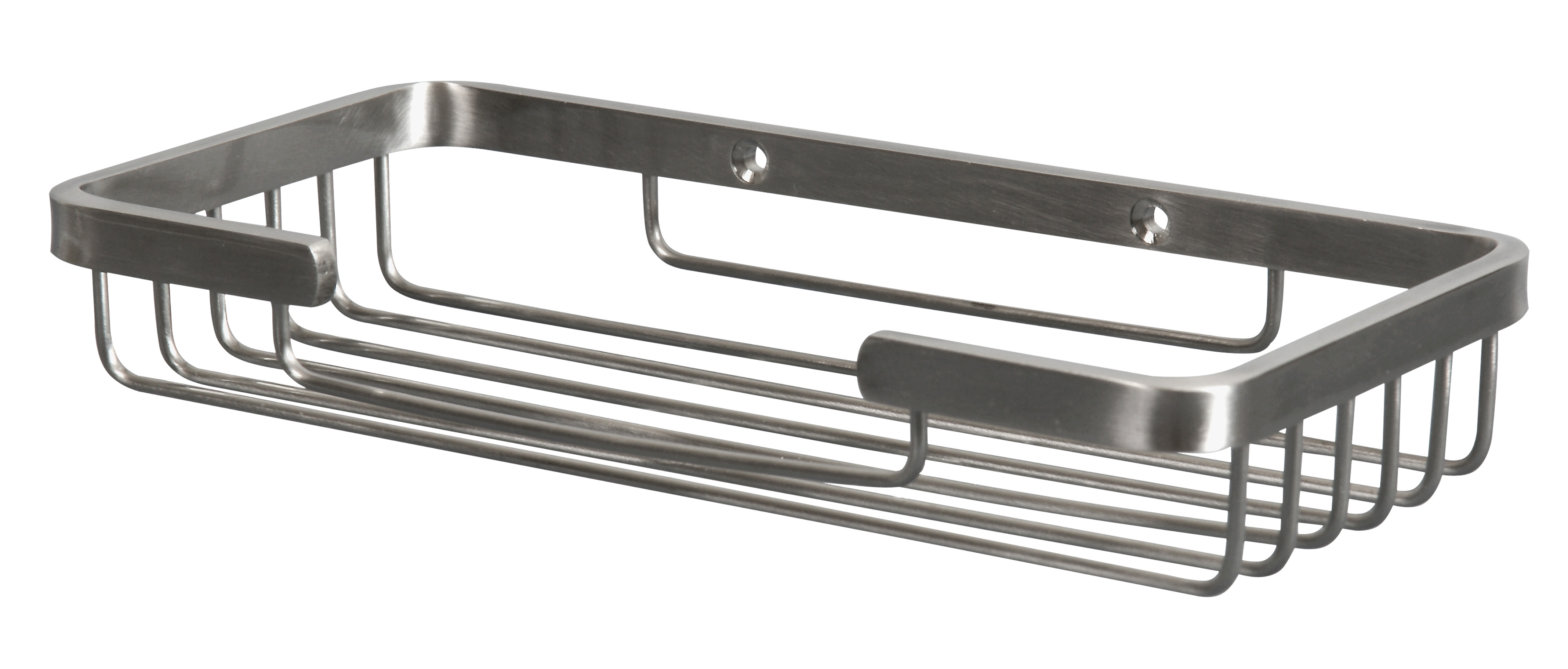 Мыльница большая. Крепится к стене шурупами. Расстояние между креплениями 7 см. Произведено из нержавеющей стали, покрытой хромом.