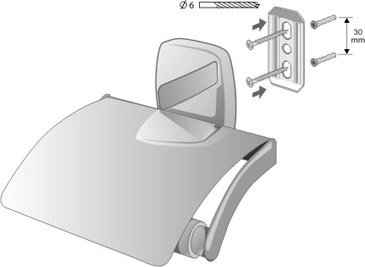 Держатель туалетной бумаги с крышкой. Крепится к стене шурупами. Произведено из цинкоалюминиевого сплава, покрытого хромом.