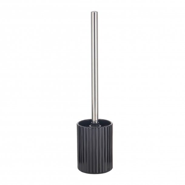 Щетка для унитаза. Произведено из стекла, ручка изготовлена из нержавеющей стали. Цвет черный. Матовая поверхность с рельефными полосками.