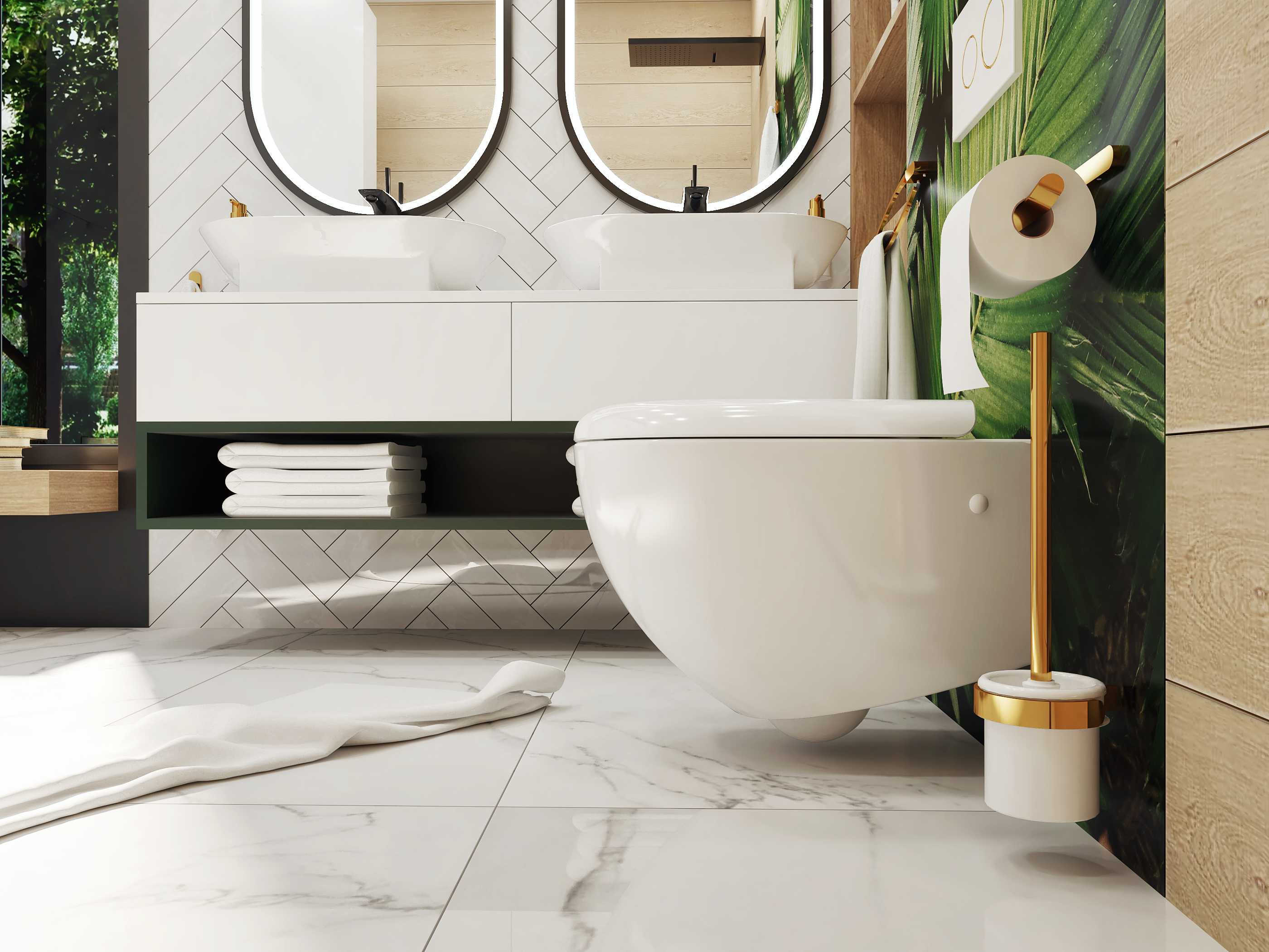 Держатель туалетной бумаги без крышки. Крепится к стене шурупами. Произведено из цинкоалюминиевого сплава с золотистым напылением.