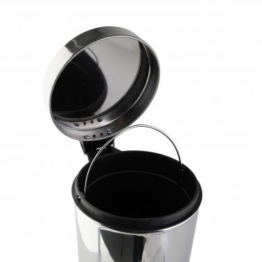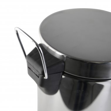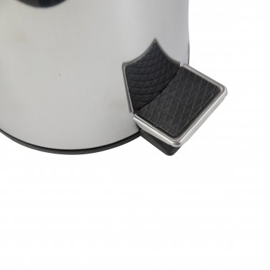 Ведро с педалью. Объем 5 литров. Диаметр 20,5см. Произведено из хромированной стали. Съемный пластиковый вкладыш с ручкой.  Упаковано в картонную коробку.